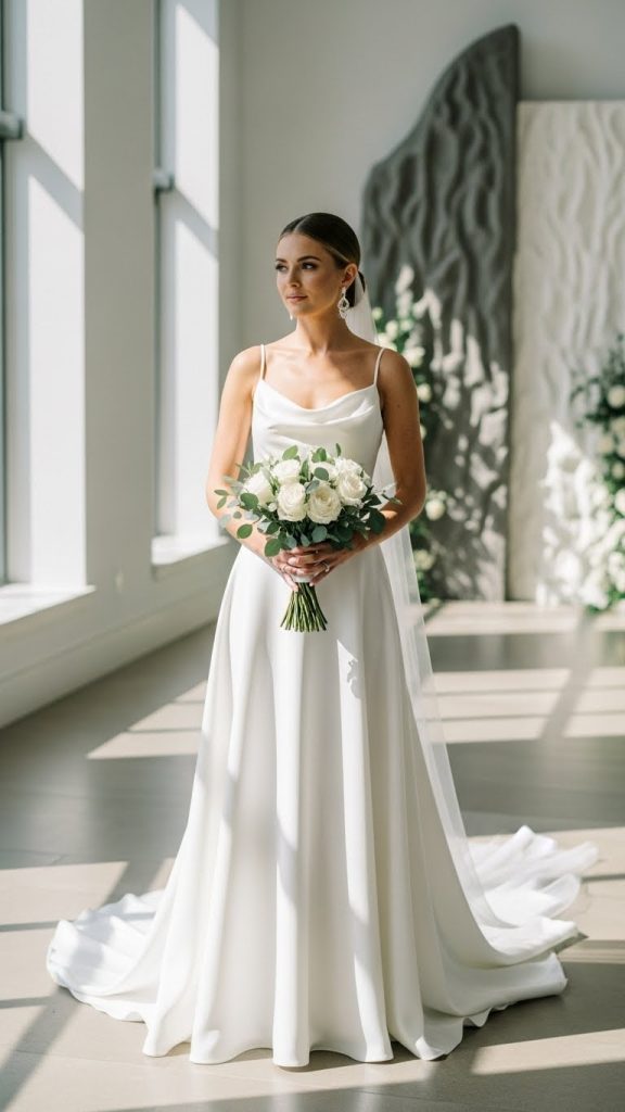 1. Minimal Satin Bridal Gown