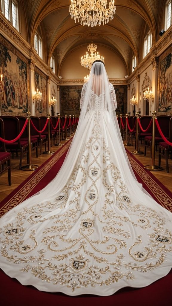 6. Handmade Bridal Gown with Long Train