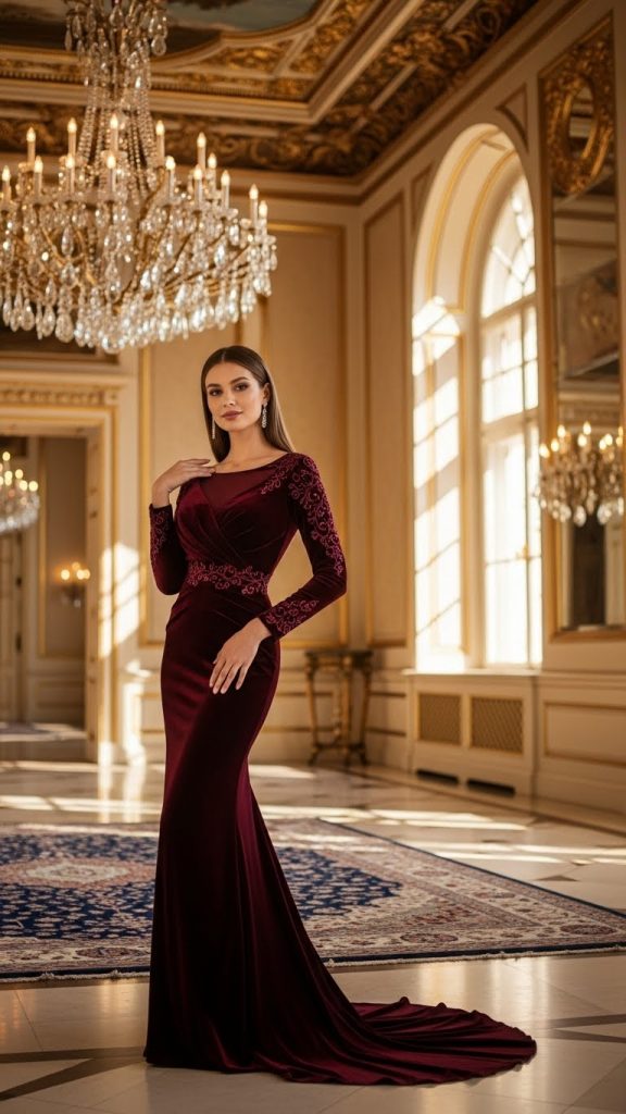 Designers are adding simple stone work, embroidery, or belts to make velvet dresses more stylish and modern.