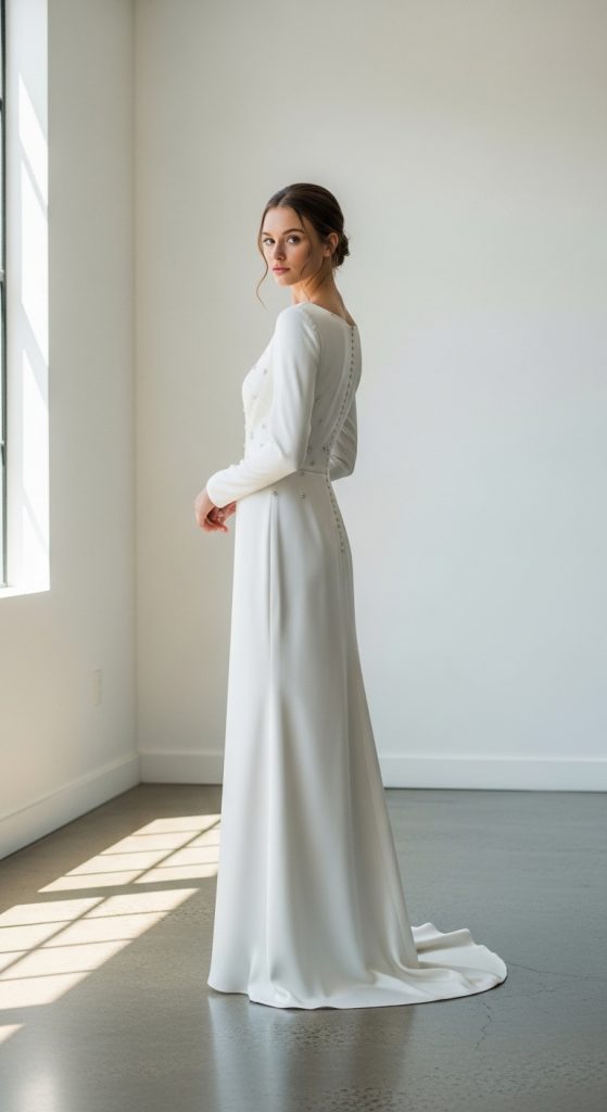 Instead of heavy embellishments, fine crystal or metallic beads are used to add subtle sparkle. This style is ideal for contemporary brides who value understated elegance.