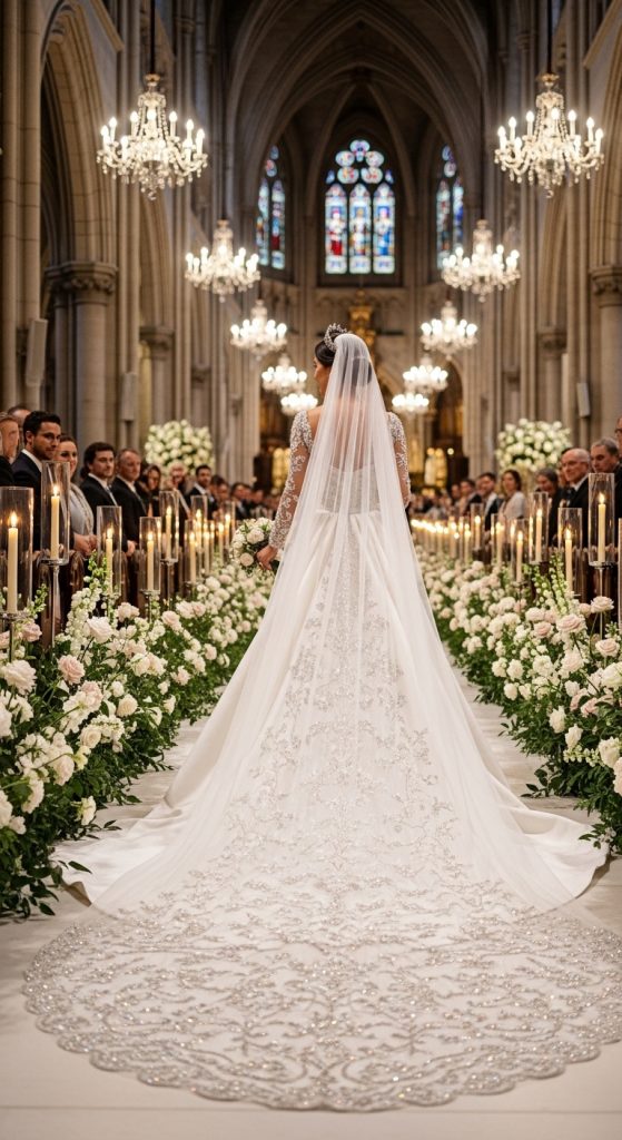 10. Handcrafted Long-Trail Wedding Dress