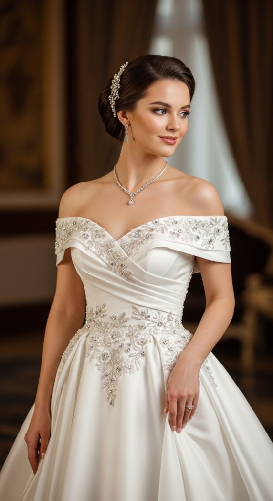 7. Handcrafted Off-Shoulder Wedding Gown