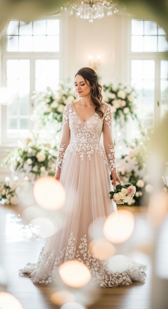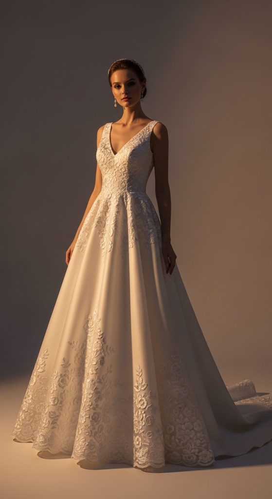 The A-line reception gown is a timeless choice that flatters almost every body type. This style features a fitted bodice that gradually flares from the waist, creating a graceful and balanced silhouette. Brides often choose luxurious fabrics like satin, silk, or organza with subtle embroidery or beadwork. The simplicity of an A-line gown makes it perfect for elegant receptions where sophistication is key.