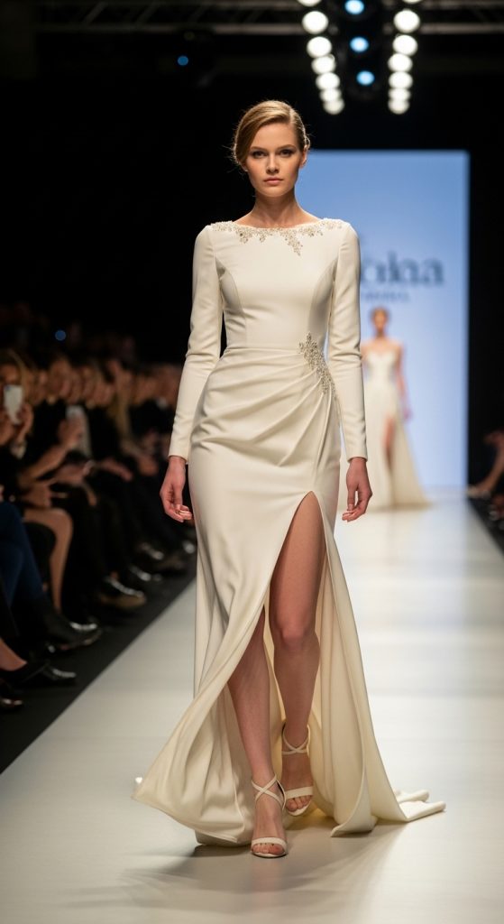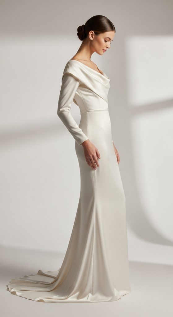 Minimalist satin gowns are becoming increasingly popular among modern brides. These gowns focus on clean lines, smooth textures, and elegant tailoring rather than heavy embellishments. A simple satin gown with a structured silhouette, square neckline, or soft draping offers effortless sophistication. This style is perfect for brides who prefer understated luxury.