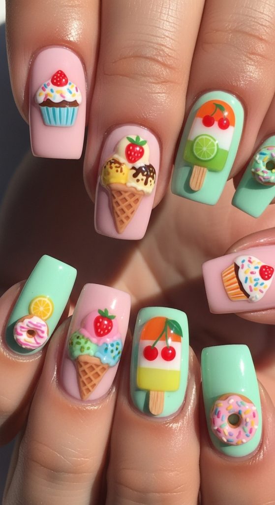 7. Ice Cream and Dessert Nails