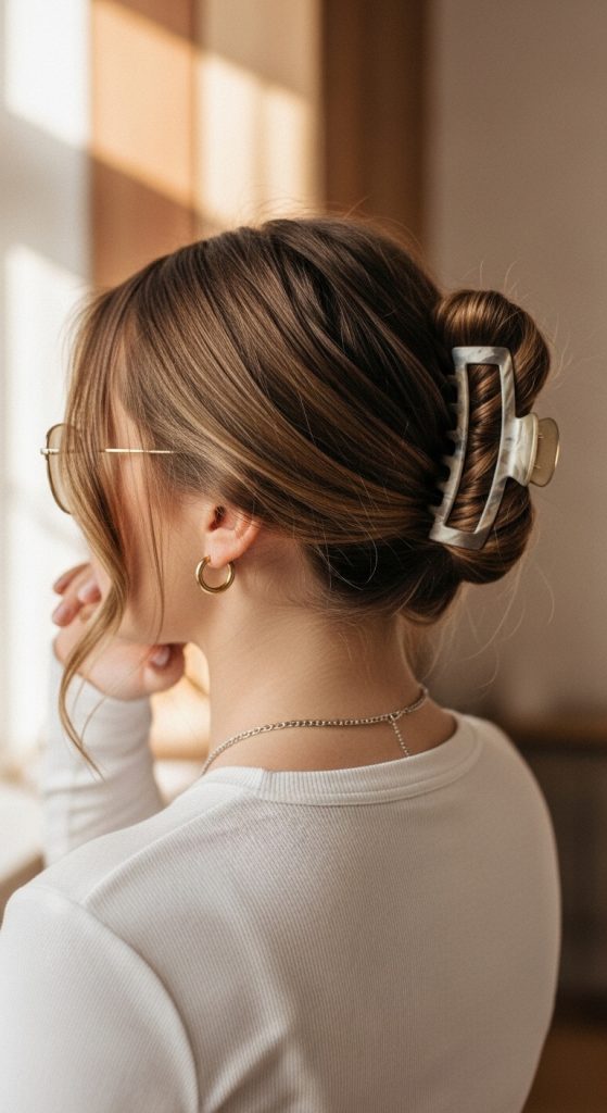 The claw clip hairstyle has become very popular because it is quick and fashionable.