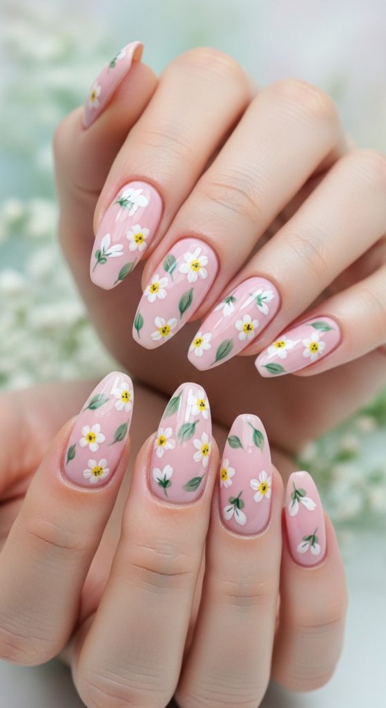 Flowers are a timeless summer favorite. Tiny daisies, roses, or abstract floral patterns add a cute and feminine touch to your nails.
