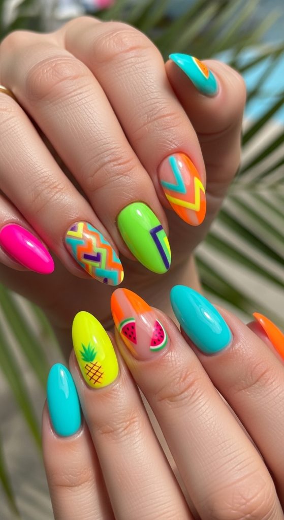 If you love bold styles, neon nails are perfect for you. Bright shades like hot pink, neon green, and electric orange instantly grab attention.