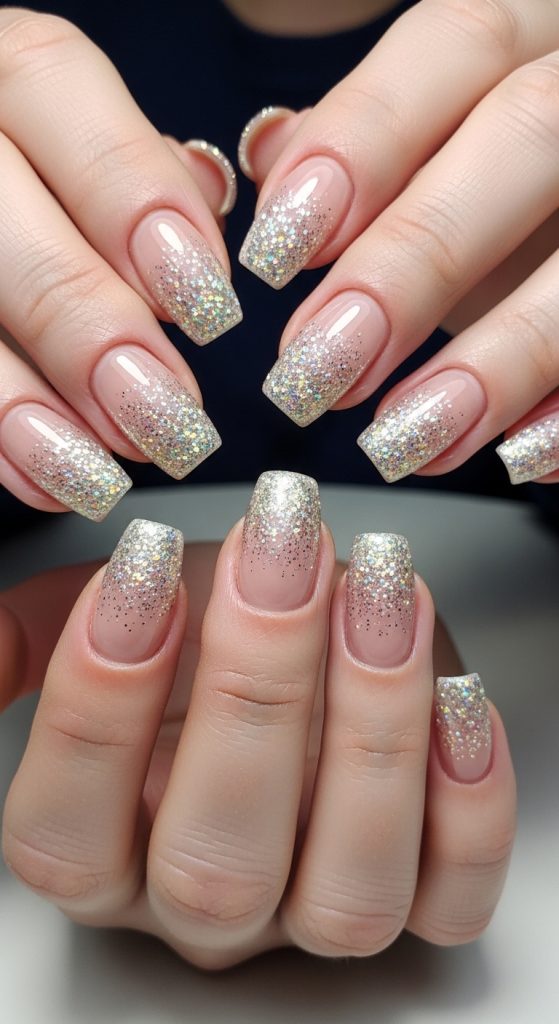 Glitter ombre nails are perfect for adding sparkle to your summer style. Blend glitter from the tips into a nude or pastel base for a soft gradient effect.