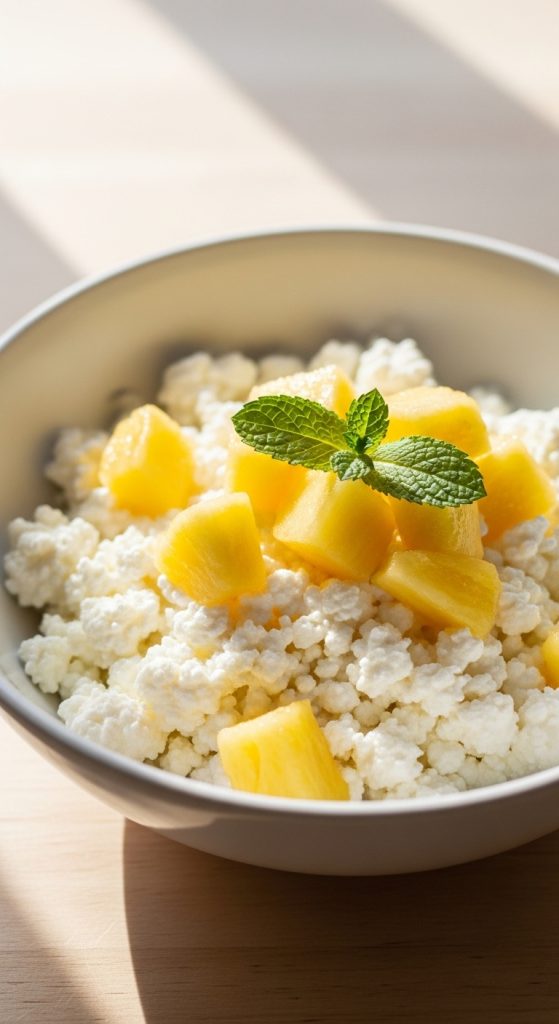 Mix cottage cheese with pineapple chunks for a sweet and savory snack. It’s high in protein and calcium, making it a great option for a quick midday bite.