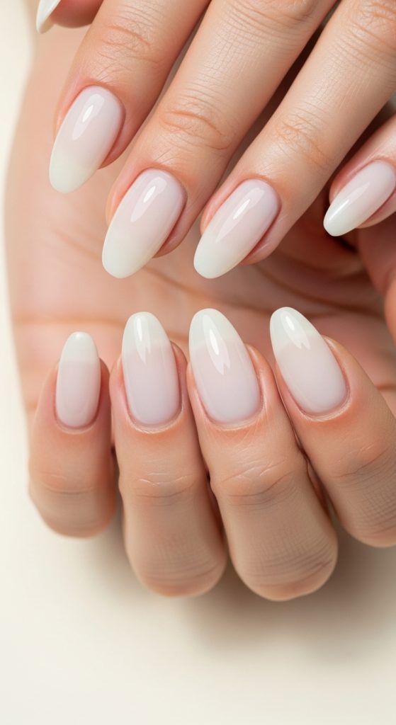 Ombre nails blend two colors seamlessly, usually from nude to white or pink. This gradient effect looks soft, classy, and very expensive without being too bold.