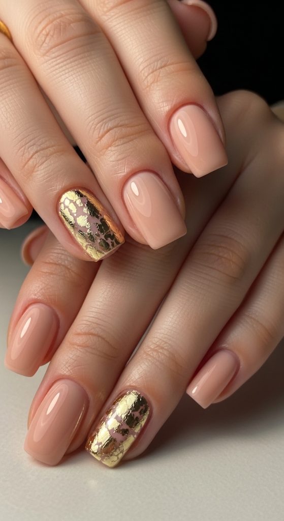 A touch of gold foil on neutral or pastel nails can instantly elevate your design. Keep it minimal—just a few flakes on one or two nails—to maintain a chic and high-end appearance.